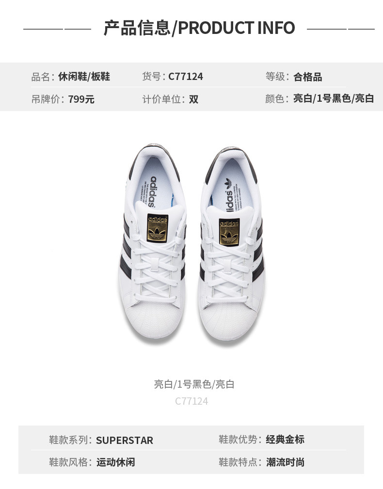 颜色分类: 主图款/新款金标贝壳头/SUPERSTAR/建议拍小一码 FX2329/贝壳头/SUPERSTAR EG4959/贝壳头/SUPERSTAR M20324/史密斯绿尾/STAN SMITH FX5502/史密斯绿尾/STAN SMITH/新款 FZ0059/贝壳头/SUPERSTAR GV9804/贝壳头/SUPERSTAR Q47184/贝壳头/SUPERSTAR G27706/CONTINENTAL 80 FY1264/贝壳头/SUPERSTAR 承诺:十年老店 售后无忧 承诺:只售正品 虎扑认证 炫动运动
