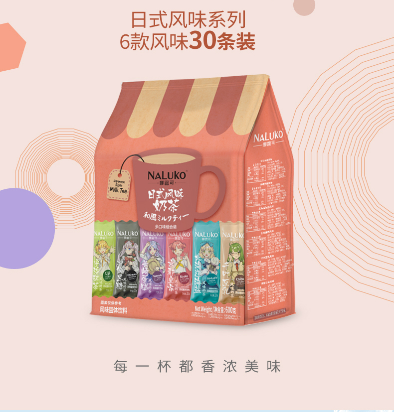 娜露可十口味日系风味动漫风抹茶味速溶奶茶冲饮小袋装网红奶茶粉