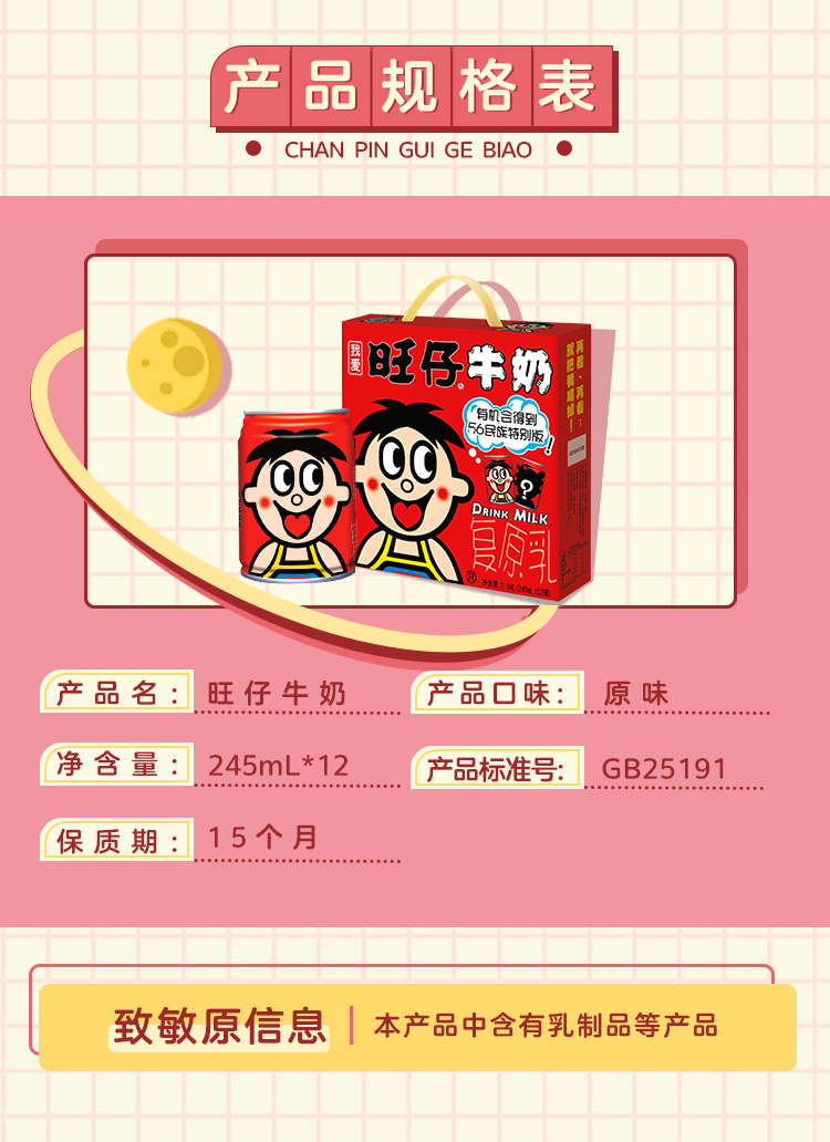旺旺旺仔牛奶245ml*12铁罐装整箱批发儿童牛奶早餐饮品红罐原味