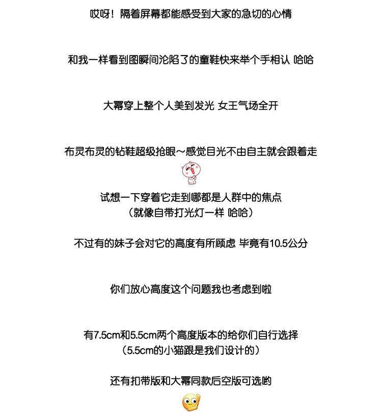 尺码: 【无敌稳!可以跳起来的水钻鞋】 1.全球购买样开模打造 2.原厂钻面工艺+水晶羊皮里 3.90天超长售后保证 标准尺码,跟高5.5cm/7.5cm 33 34 35 36 37 38 39 40