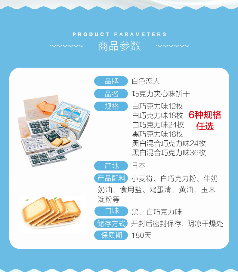 口味: 黑巧克力夹心18枚 黑白巧克力夹心混合24枚 白巧克力夹心24枚 白巧克力夹心18枚 黑白巧克力夹心混合36枚 白巧克力夹心12枚