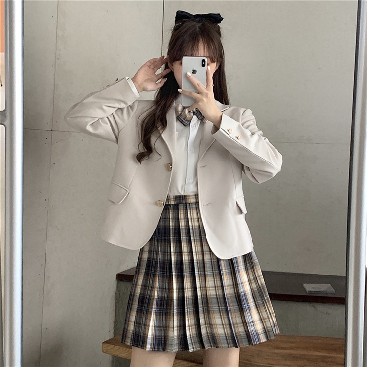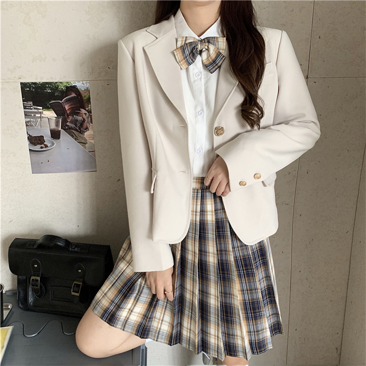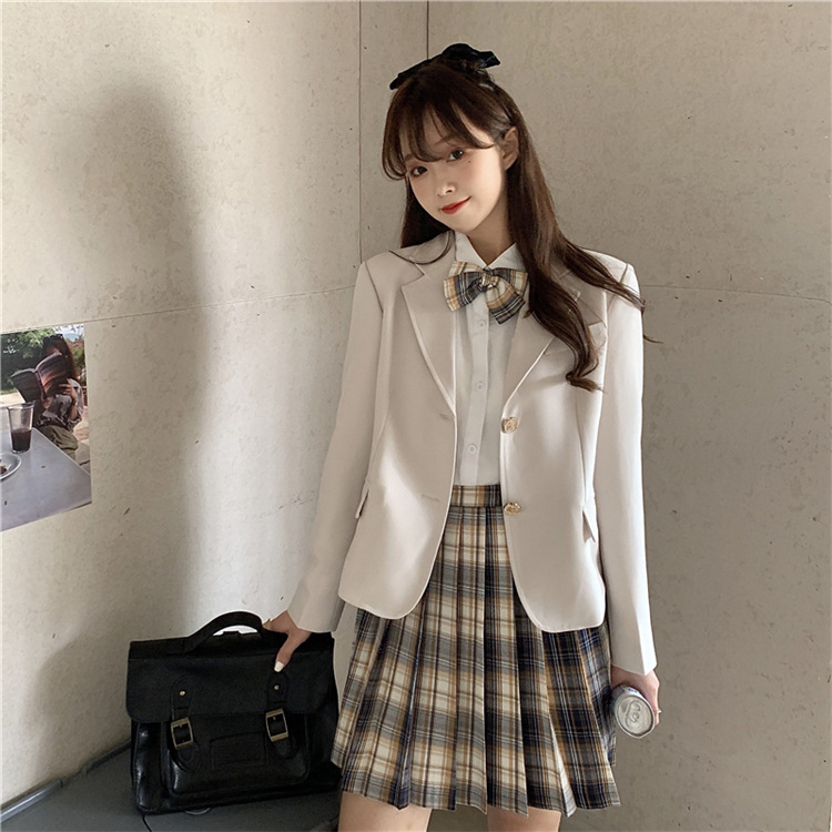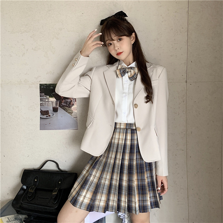 | 货号 | 061009T9816 | 上市年份/季节 | 2020年秋季 | 颜色 | 西装外套,格子半身裙,白色衬衫(配蝴蝶结) |