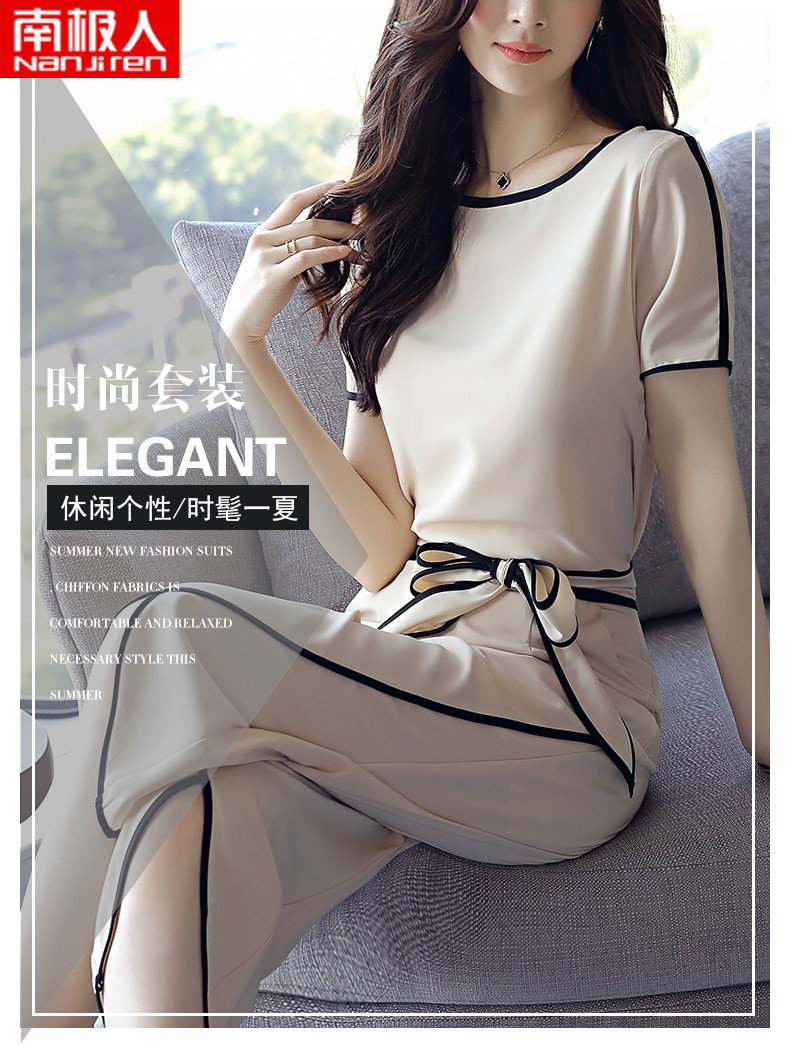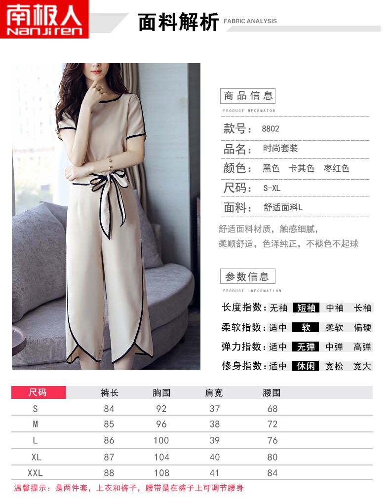 商品名称:南极人时尚阔腿裤套装女夏洋气时髦雪纺气质小个子显牌七分裤两 卡其色 L