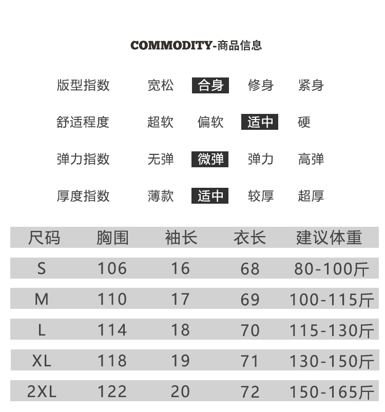 尺码: S M L XL 2XL