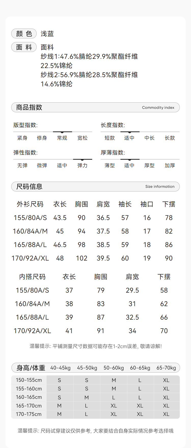 尺码: 155/80A/S 160/84A/M 165/88A/L 170/92A/XL