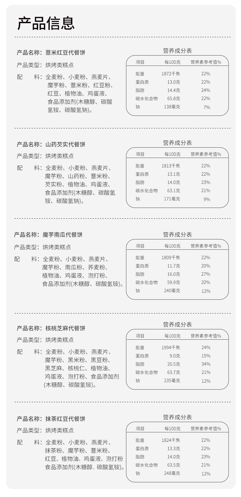 配料表:全麦粉、小麦粉、燕麦片、魔芋粉、薏米粉、红豆粉、红豆等详见包装