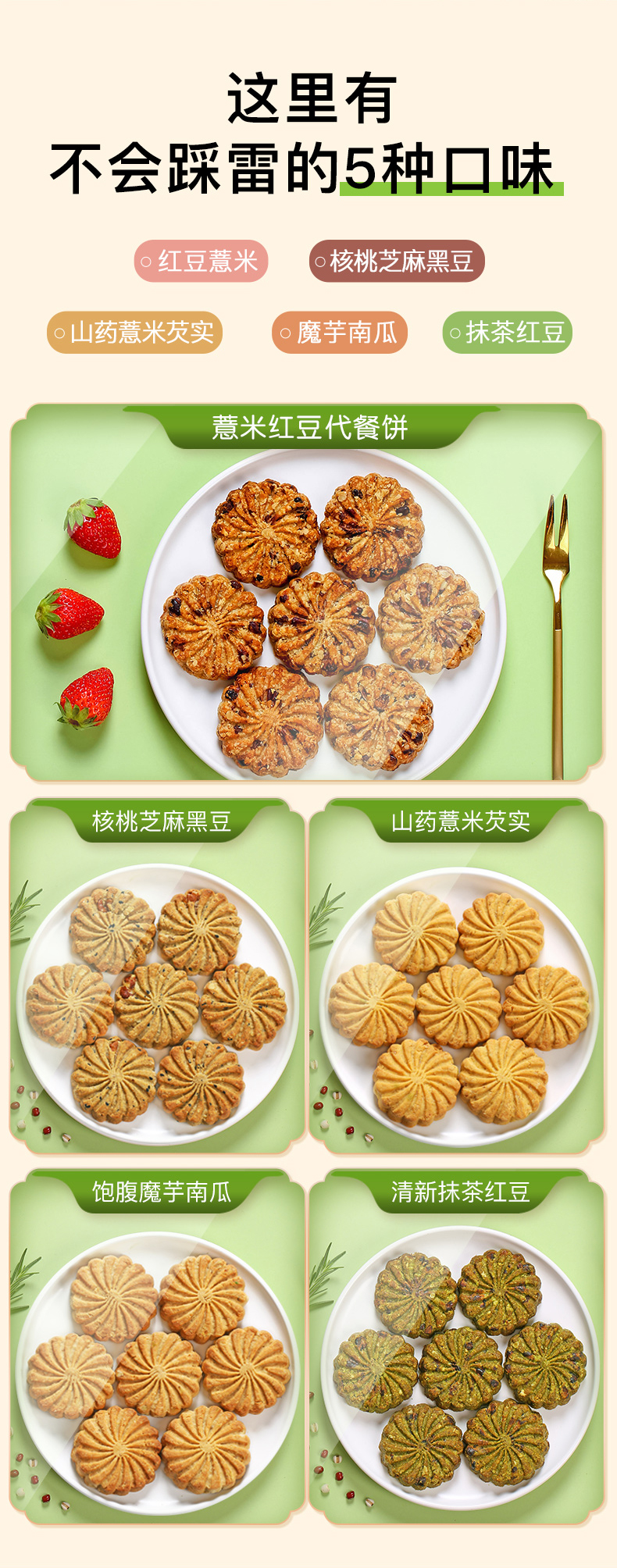 口味: 红豆薏米燕麦全麦代餐饼干 店长推荐! 无添加蔗糖营养早餐 山药薏米芡实饼! 营养健康好吃核桃芝麻黑豆饼 孕妇儿童老人都可放心吃! 轻食健康饱腹代餐健身餐 魔芋南瓜粗粮饼! 抹茶控懒人代午餐晚餐 抹茶味薏米红豆饼! 收藏加购享优先发货 此项不用拍哦!