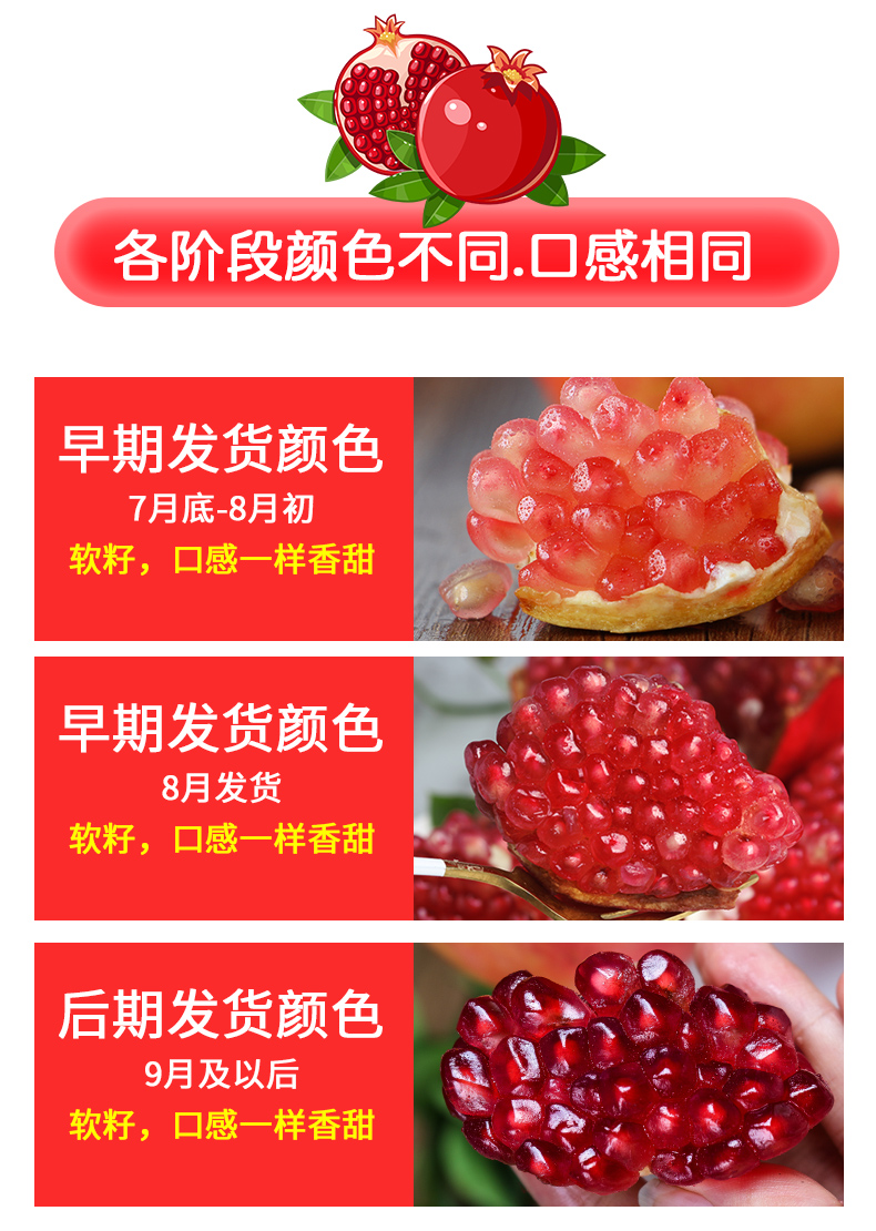 单果规格: 小果【体验装】单果约3-5两!试吃尝鲜 中果【实惠装】单果约5-7两!高性价比 大果【优选装】单果约7-9两!吃货专享 特大果【豪华装】单果9两以上!巨无霸
