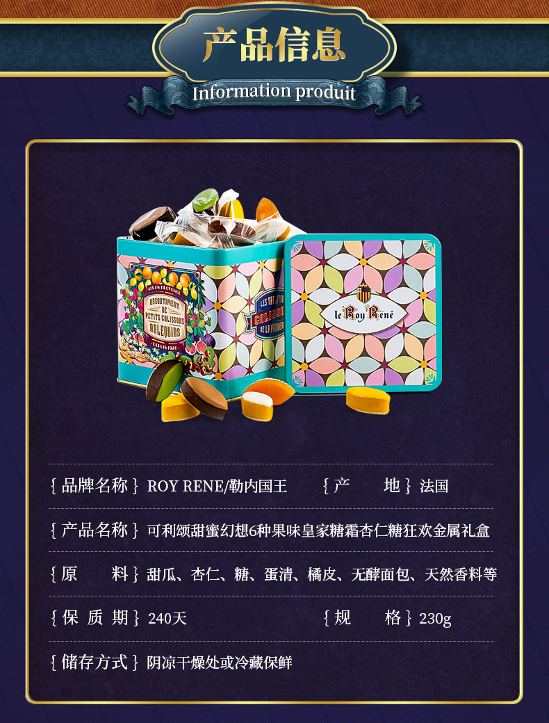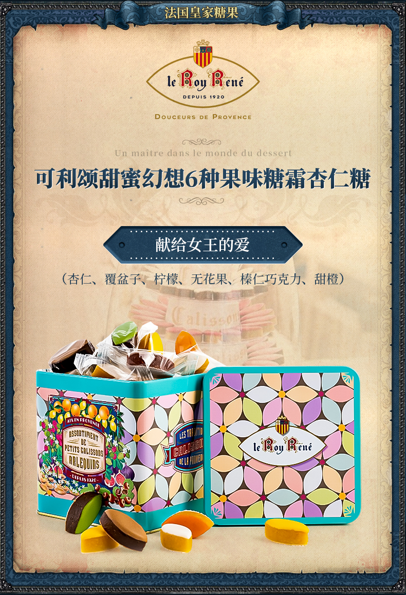 系列: 可利颂甜蜜幻想6种果味糖霜杏仁糖金属礼盒