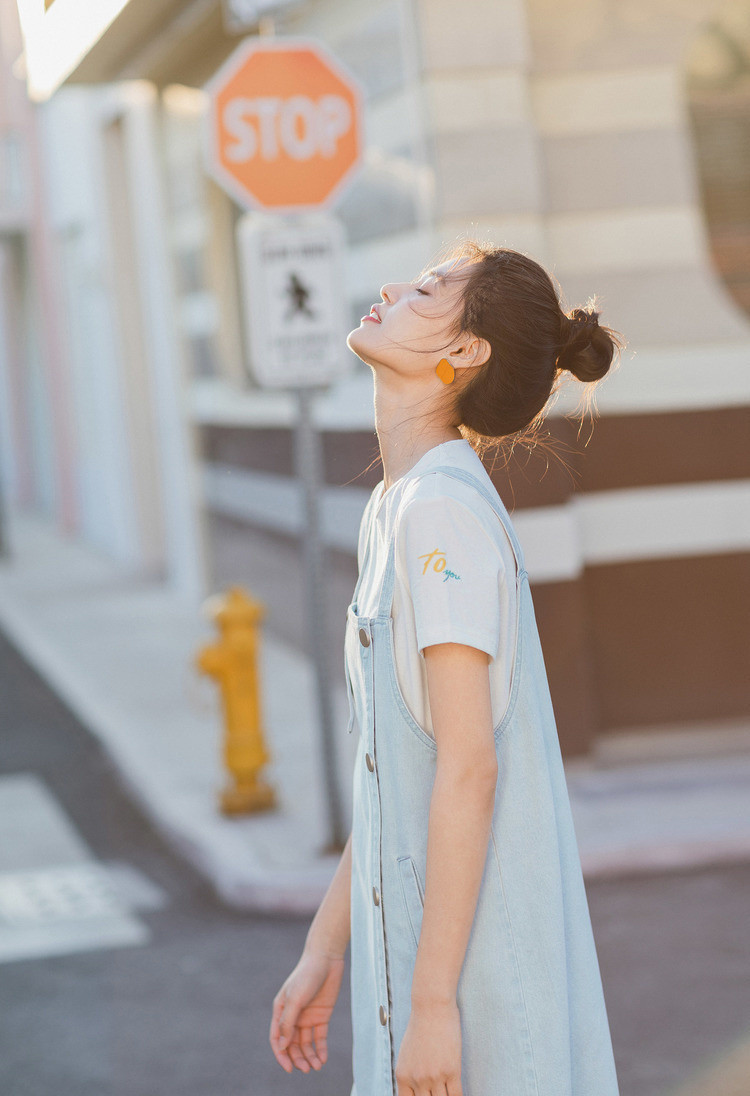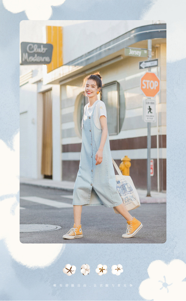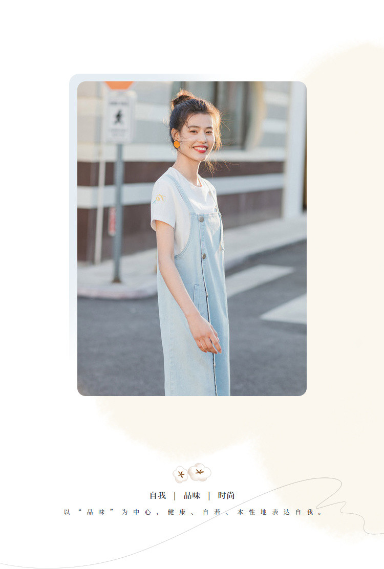 夏季特卖女款纯棉牛仔吊带裙白色短袖T恤套装裙两件套女