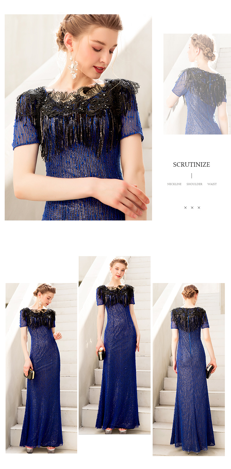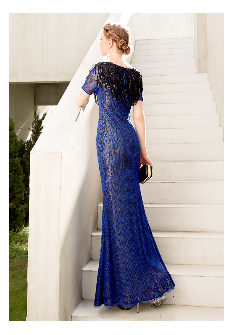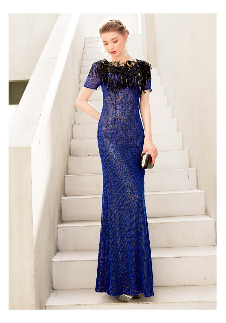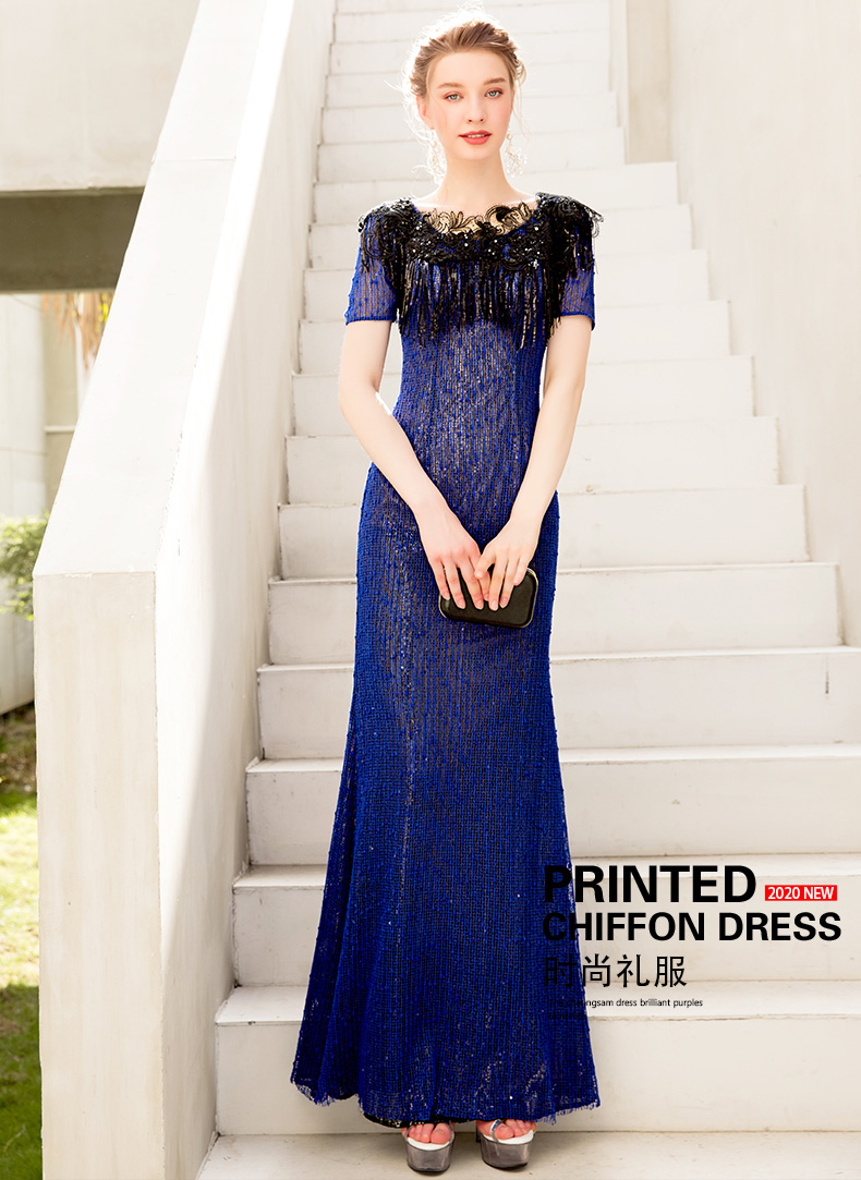 蓝色欧美礼服 鱼尾 蓝色