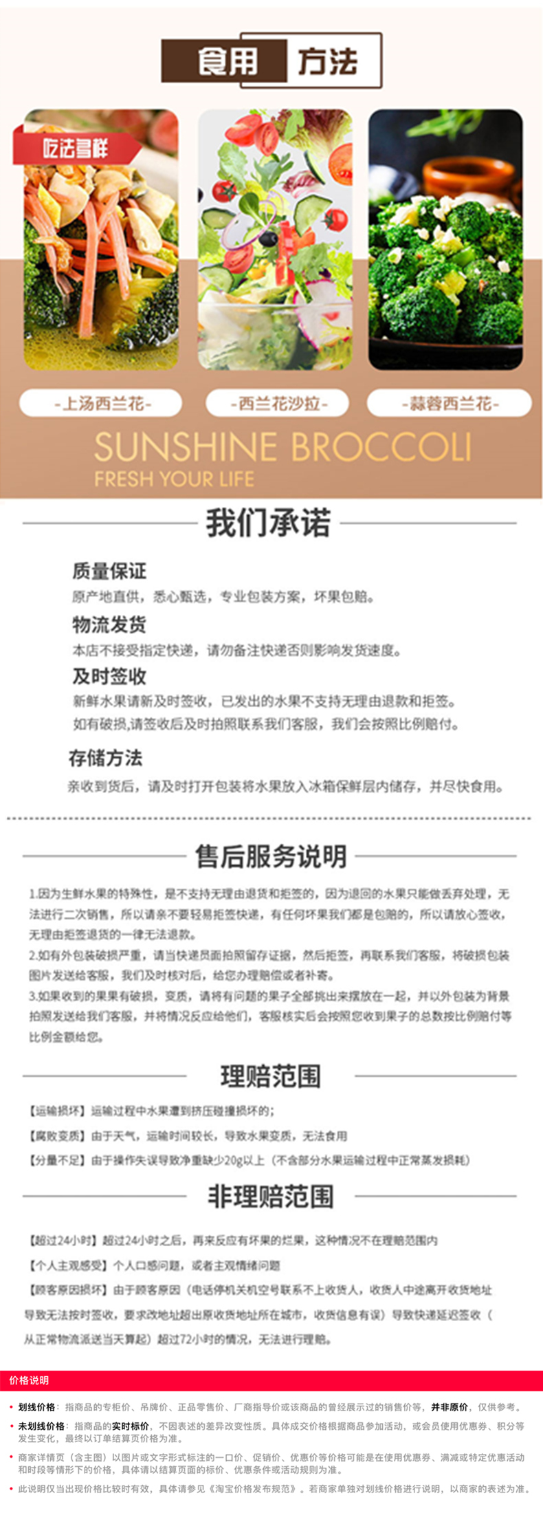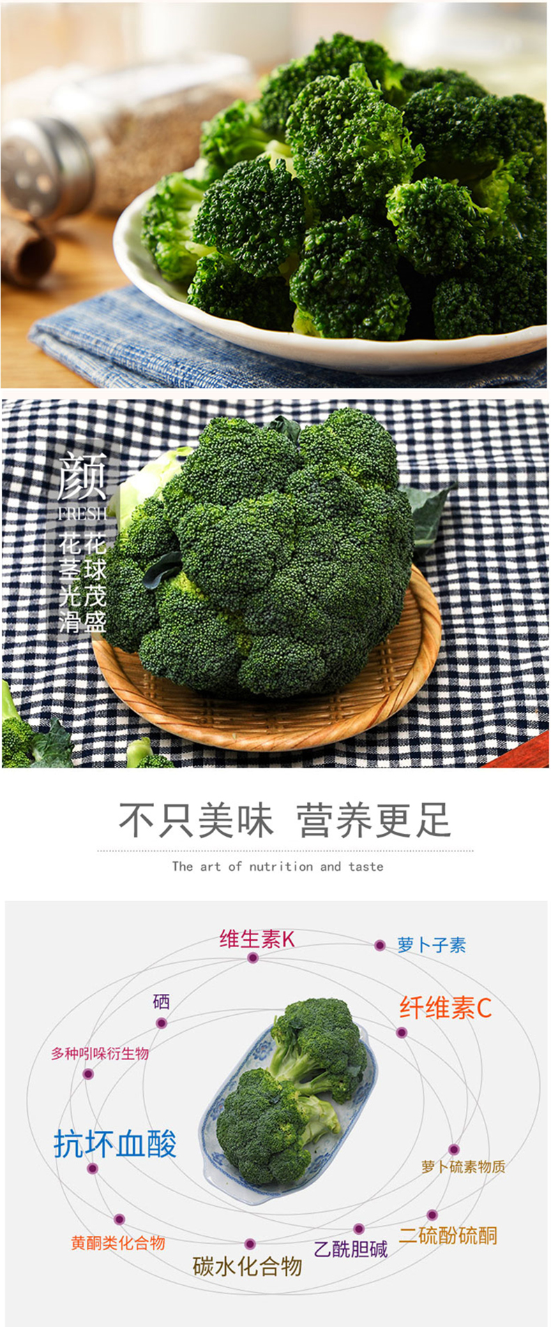商品名称:新鲜西兰花花椰菜青花菜绿花菜绿色无公害健康食品 西兰花净重1斤装(实惠装)1-2人量