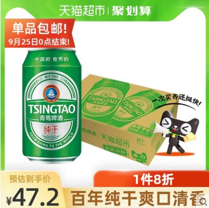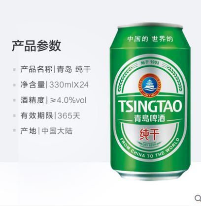 青岛啤酒清爽纯干330ml*24罐冰啤口感干爽清醇麦香浓郁新鲜正品