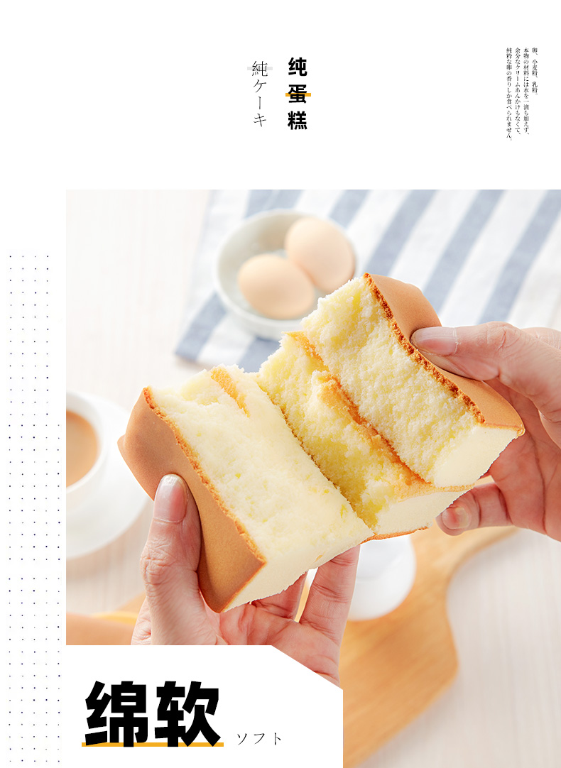 口味: 纯蛋糕 720g (发一箱约20个) 纯蛋糕奶香味720g+送720g(2箱共约40包)加量不加价仅43.9 纯蛋糕奶香味720g+送506g豆乳蛋糕(共发两箱)仅39.9