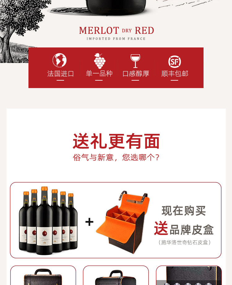 卡赛欧红酒法国原瓶进口干红梅洛干白葡萄酒整箱礼盒装