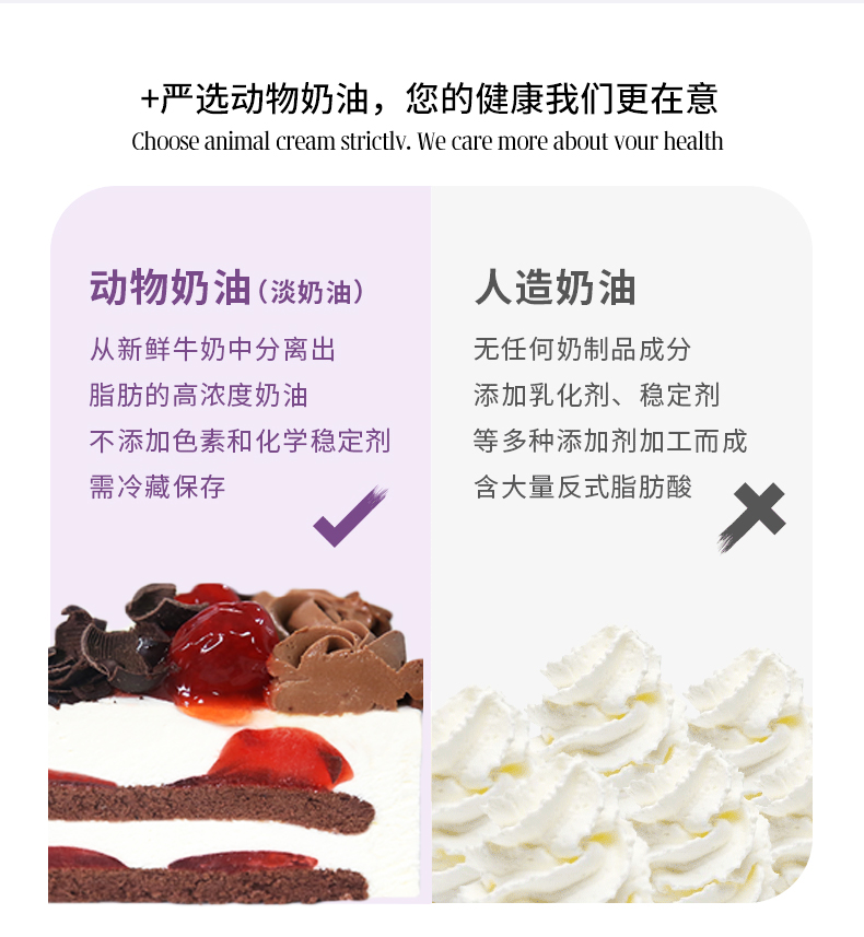 采用动物奶油 不添加色素和稳定剂 口感丝滑 甜美好看