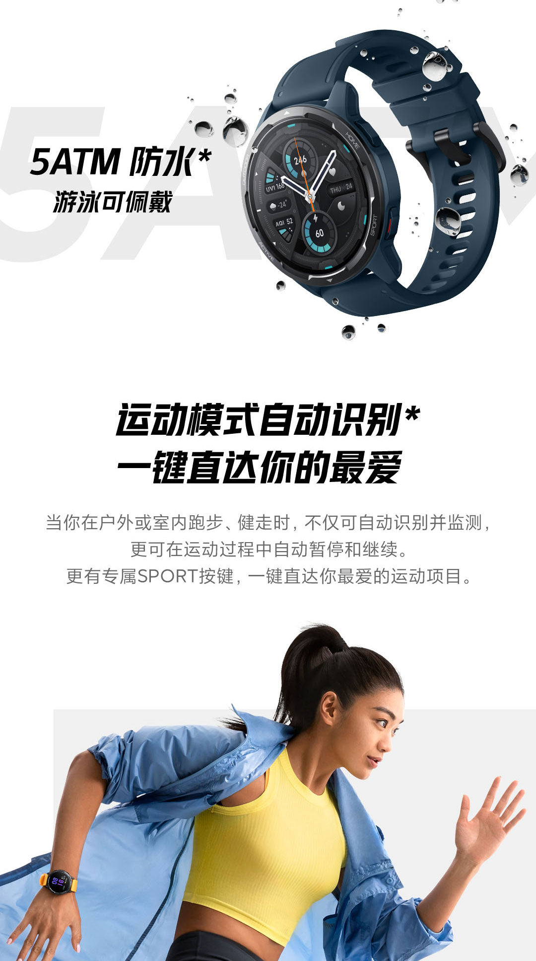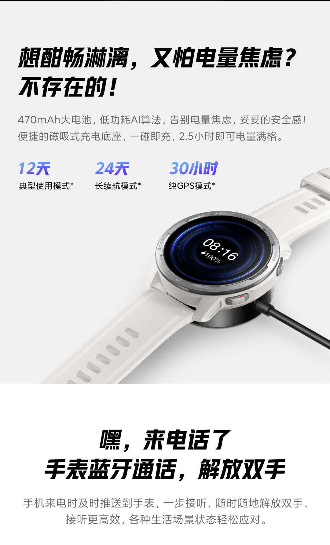 深度防水游泳 超长待机180天 微信qq