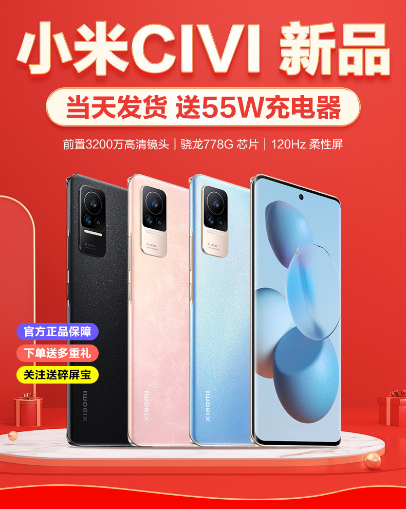小米新品xiaomi CIVI手机全新发布,24期分期送55w充电器,收藏加购,享优先发货权益,送好礼!
