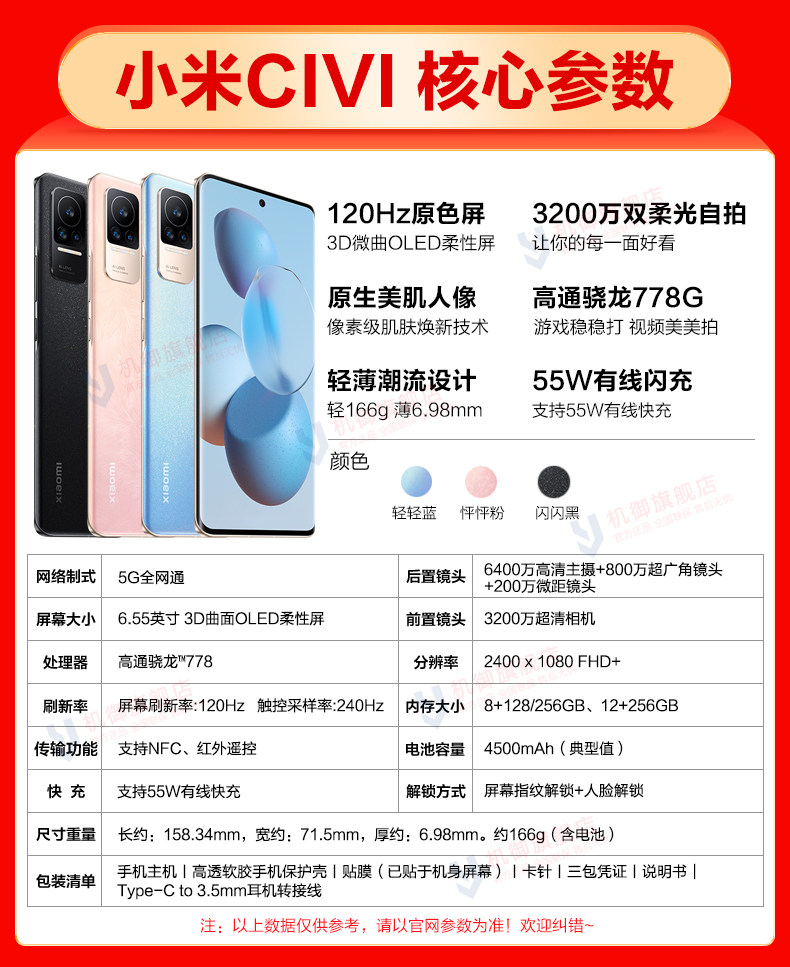 本链接为小米CIVI手机的链接,不是小米其它手机,请知悉!