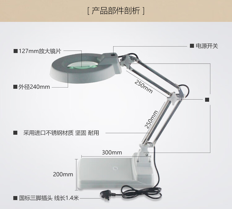 拜斯特台式放大镜带LED灯10倍20倍老人阅读电子检验钟表手机维修