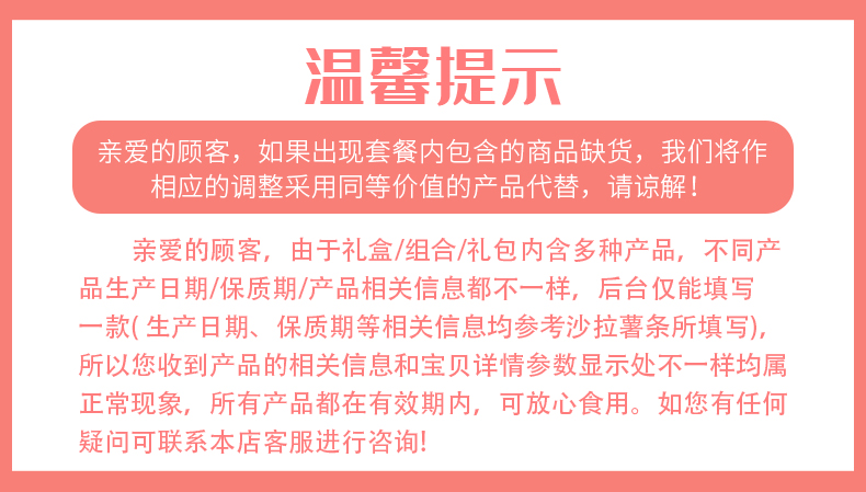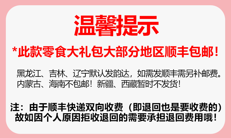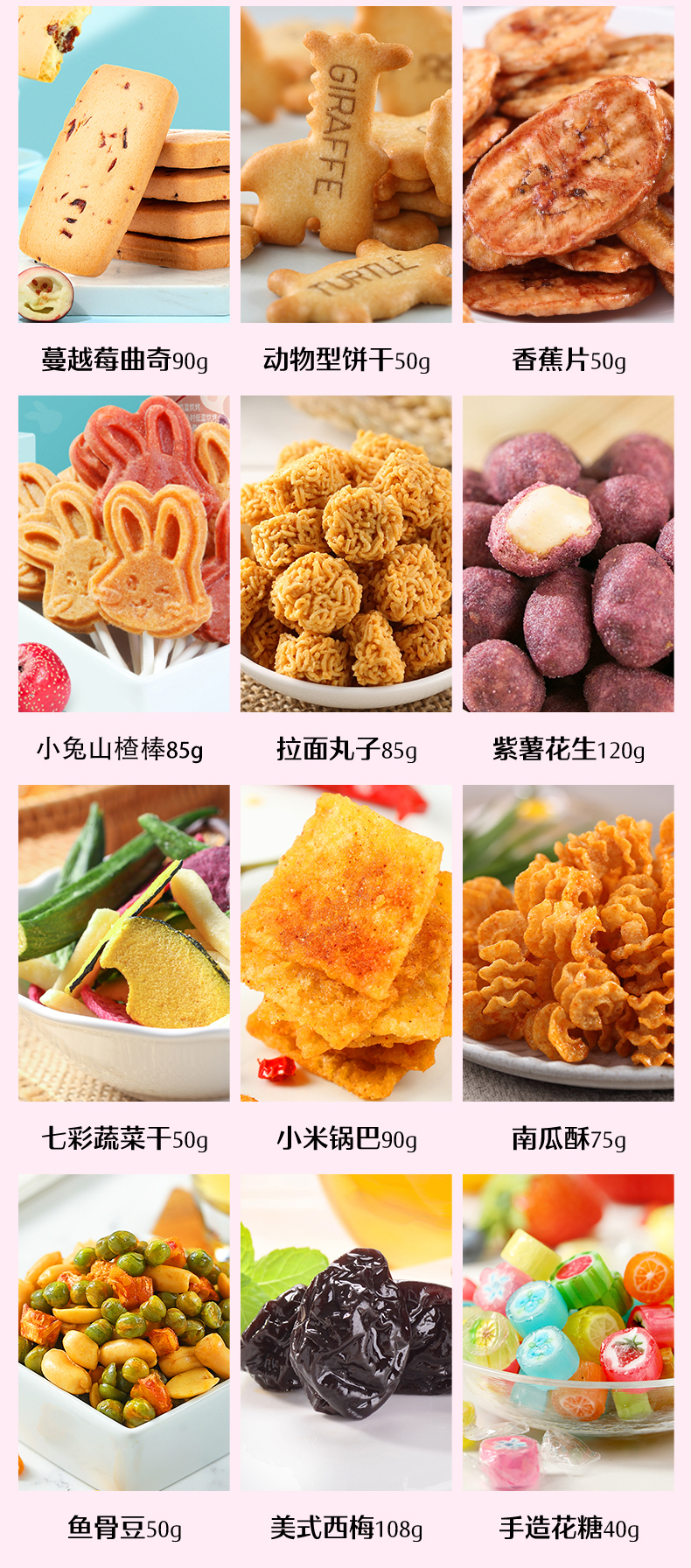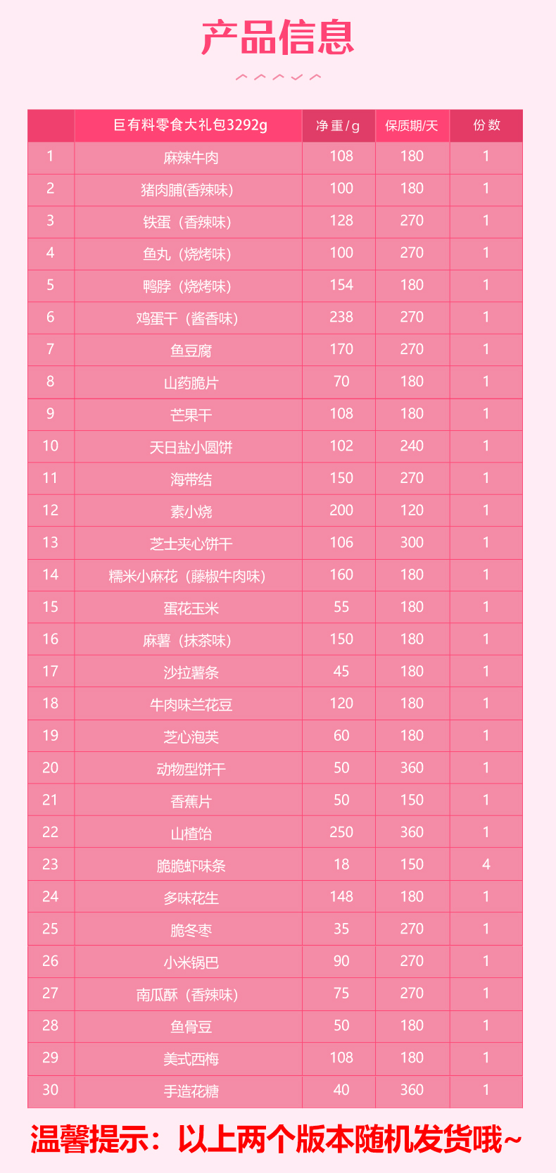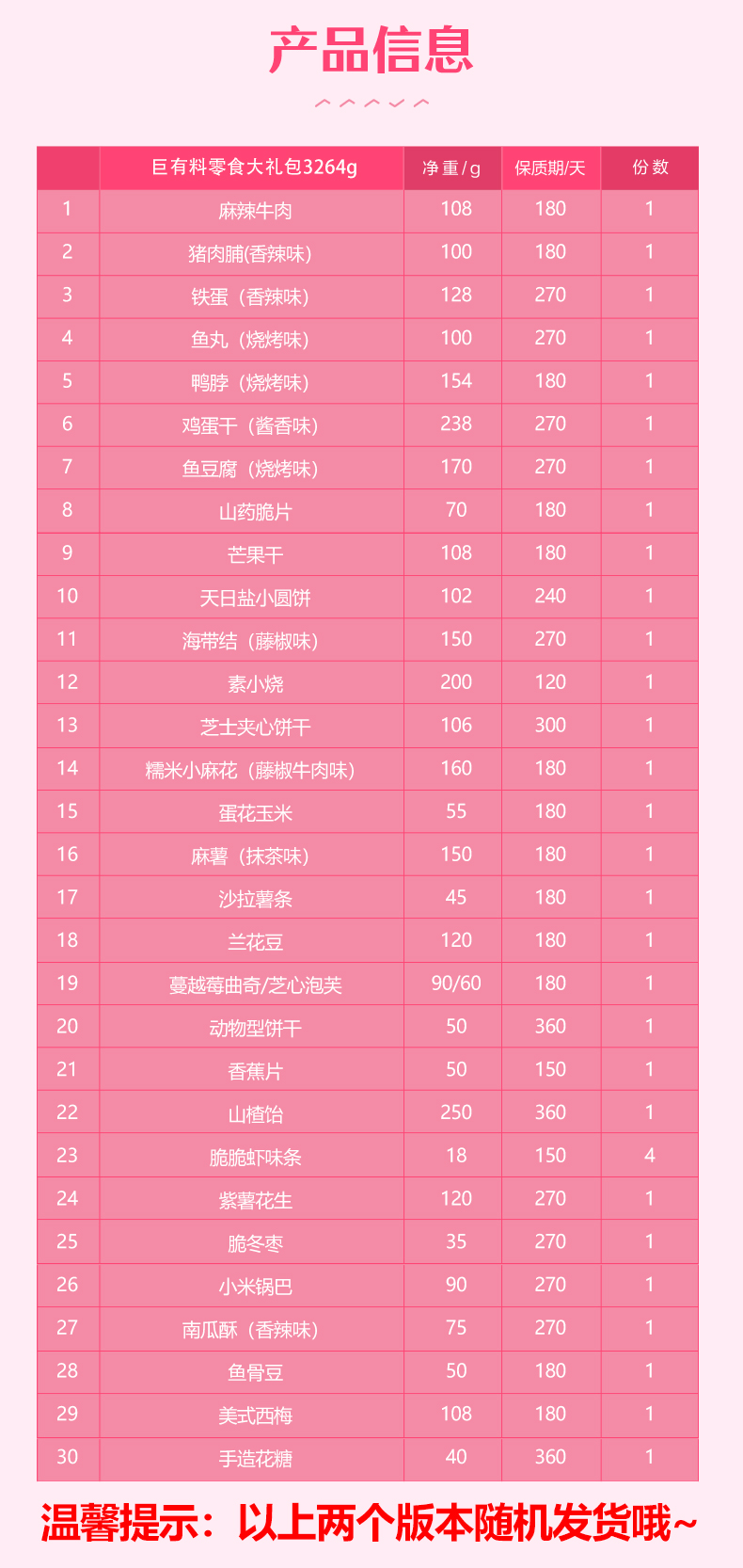 - 口味: 30款巨型零食大礼包-可爱小仙女 30款巨型零食大礼包-宝宝爱你鸭 30款巨型零食大礼包-零食归你 30款巨型零食大礼包-巨型猪饲料