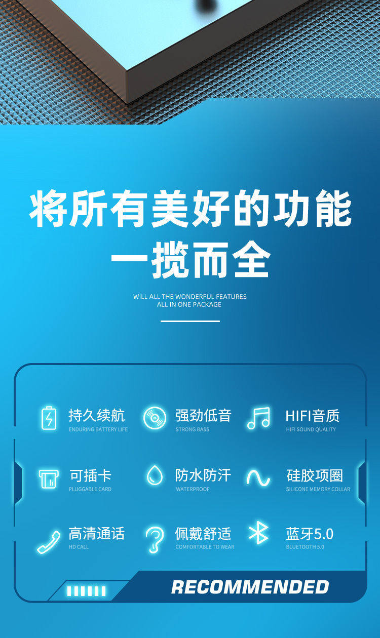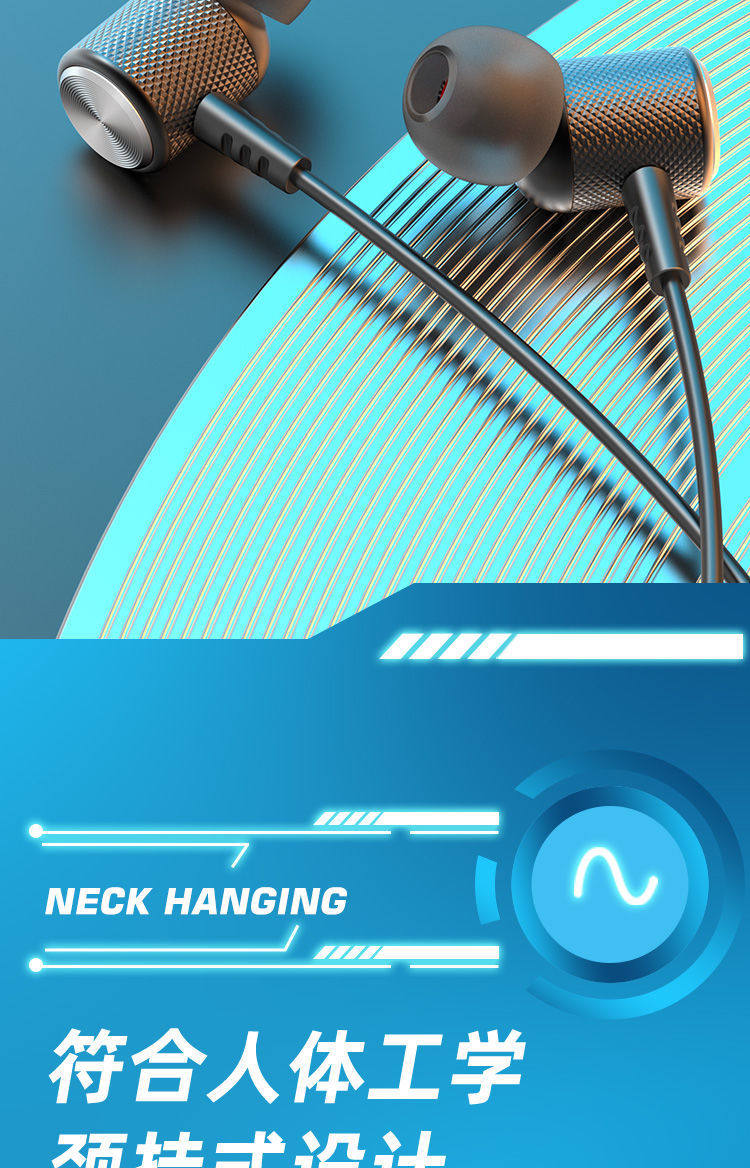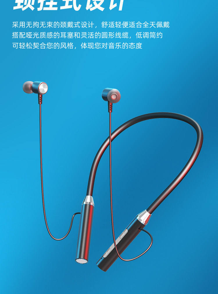 有线蓝牙耳机颈挂脖式大电量超长待机续航运动久戴不痛入耳式降噪
