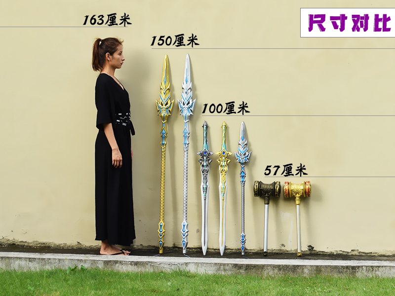 颜色分类: 昊天锤100厘米 金色昊天锤100厘米 昊天锤80厘米 金色昊天锤80厘米 昊天锤57厘米 金色昊天锤57厘米 昊天锤45厘米 金色昊天锤45厘米 七杀剑100厘米 金色七杀剑100厘米 七杀剑80厘米 金色七杀剑80厘米 七杀剑100厘米-带刀鞘 金色七杀剑100厘米-带刀鞘 七杀剑80厘米-带刀鞘 金色七杀剑80厘米-带刀鞘 蓝银霸王枪100厘米 金色霸王枪100厘米 蓝银霸王枪150厘米 金色霸王枪150厘米 海神三叉戟100厘米