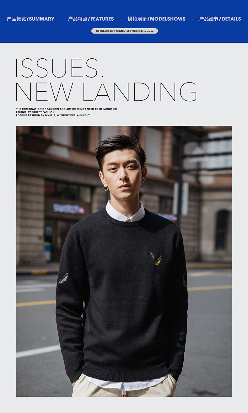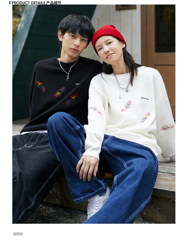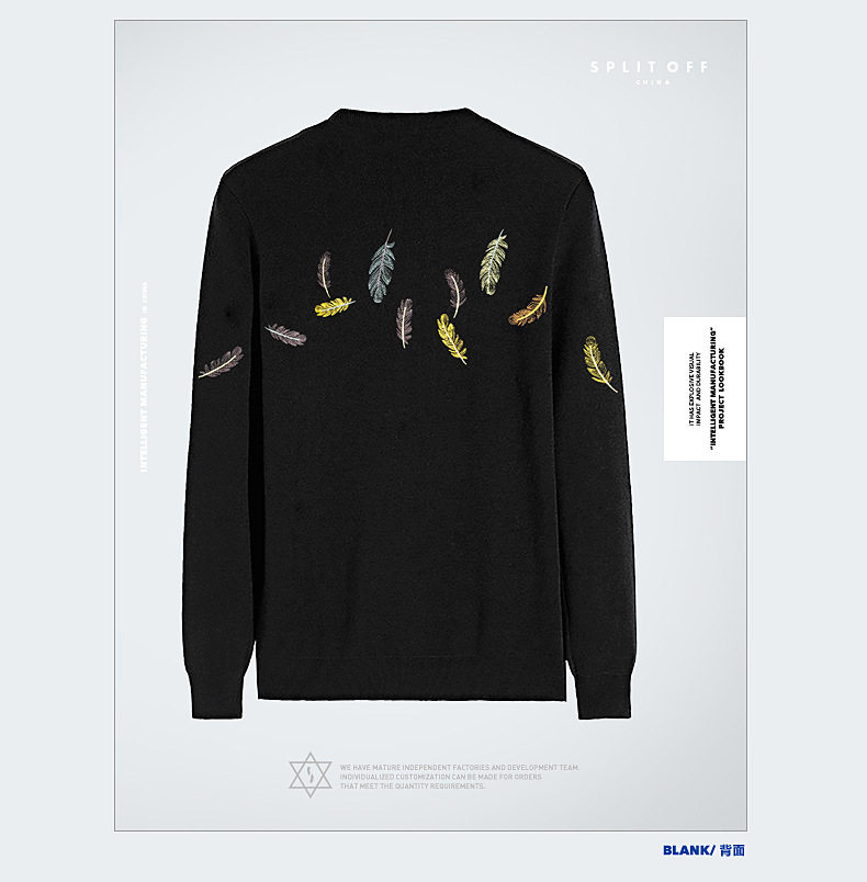 2021秋季新款潮牌毛衣男 韩版潮流羽毛刺绣男士打底圆领针织衫男