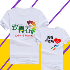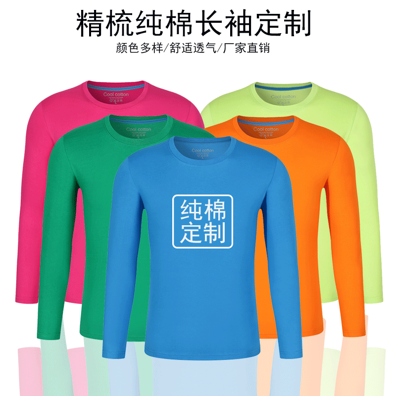 精梳纯棉圆领纯色长袖印制图案广告衫T恤 聚会班服团体服印字logo