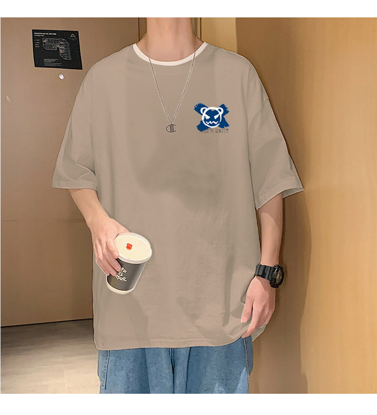 短袖T恤男夏季ins潮牌男装2023新款港风宽松半袖上衣美式纯棉体恤