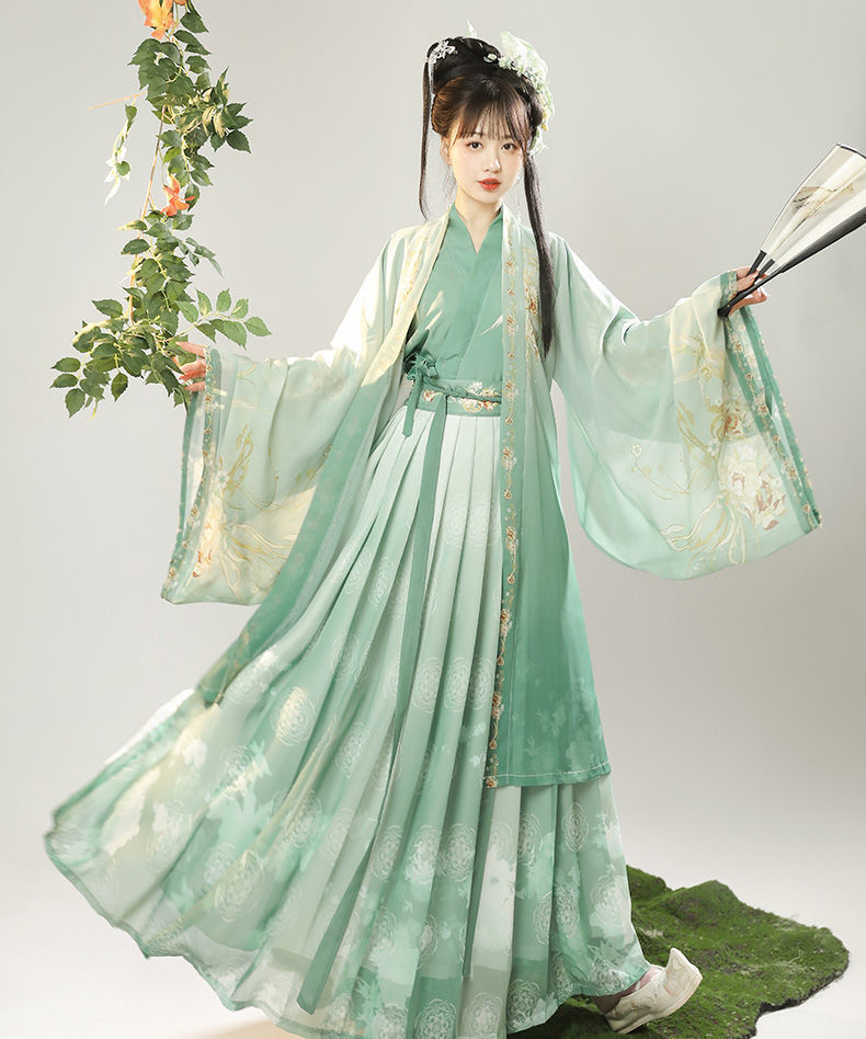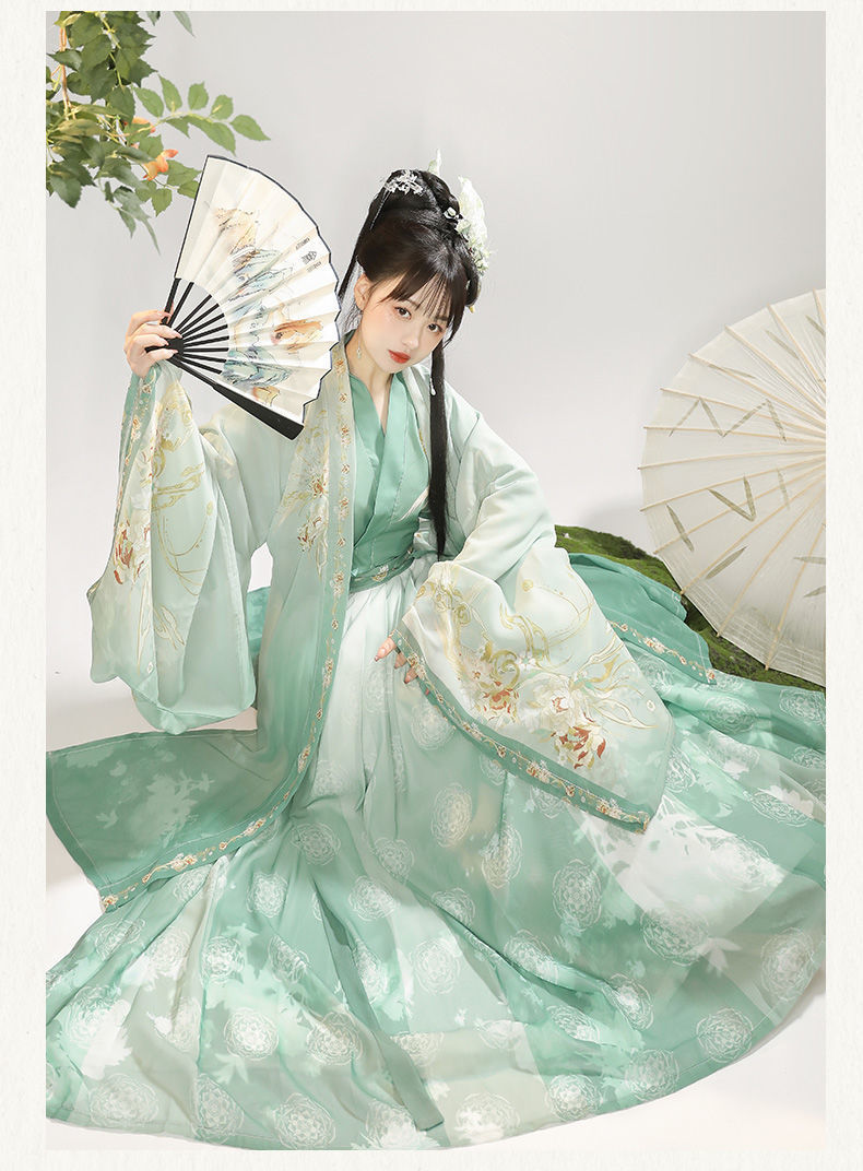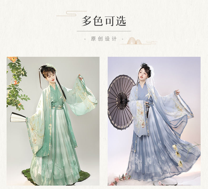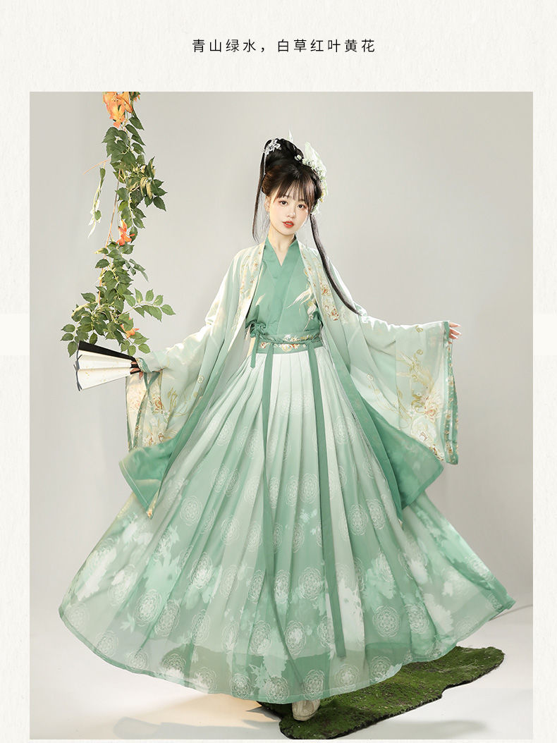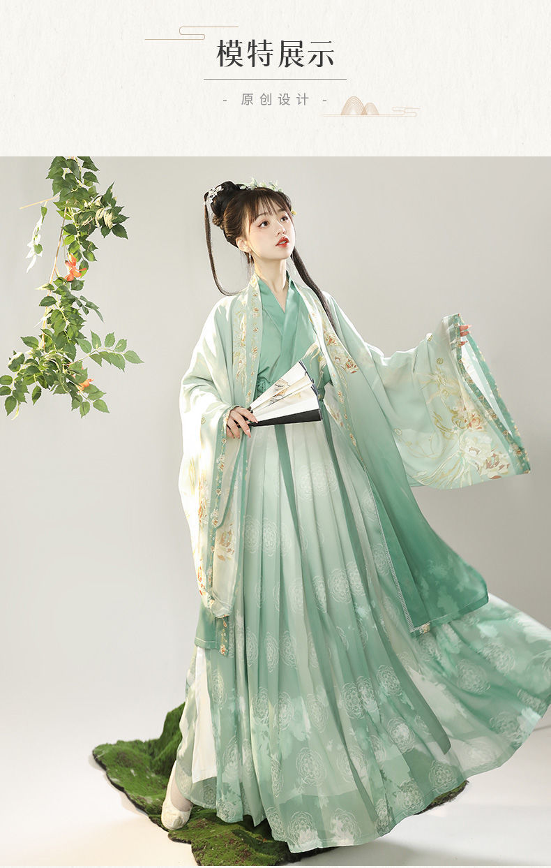 首页> 男装/ 女装/ 内衣> 女装> 半身裙> 花云阁-汉服女 魏晋风学生超仙古装交领齐腰汉服学生日常春夏款印花全套 魏晋风 绿色 XL