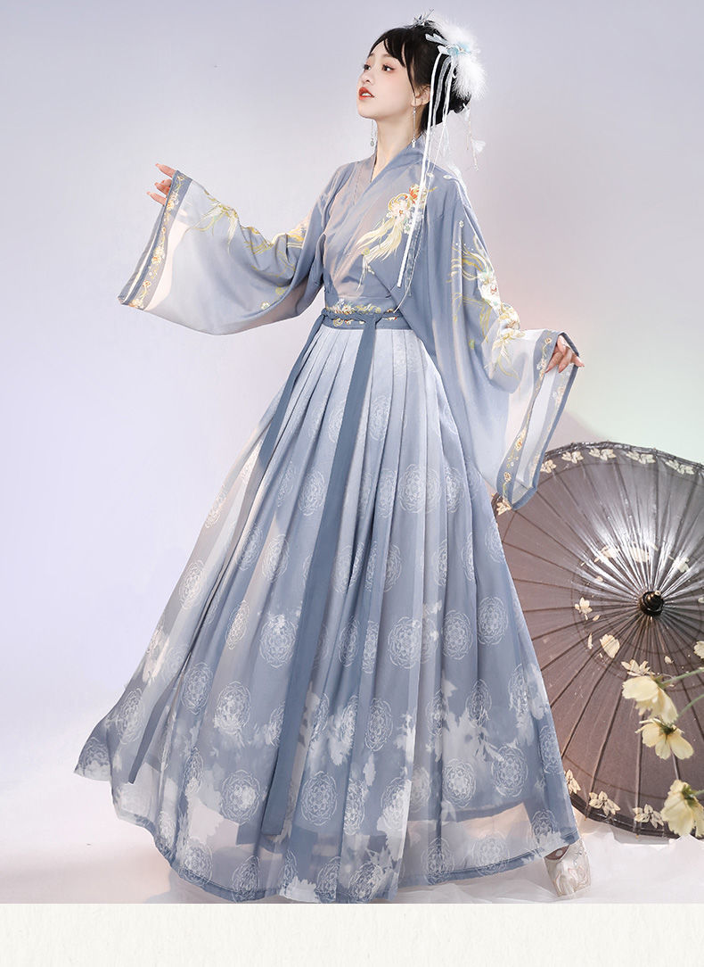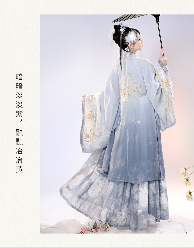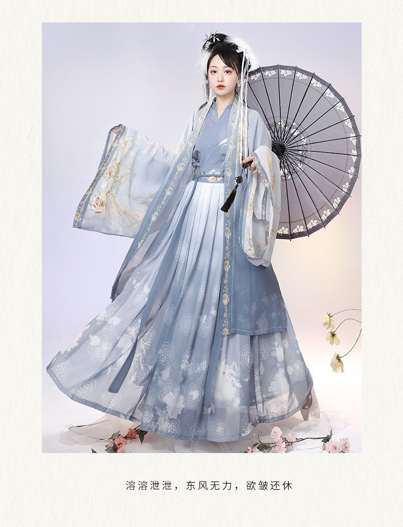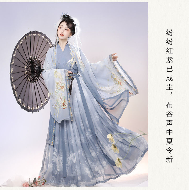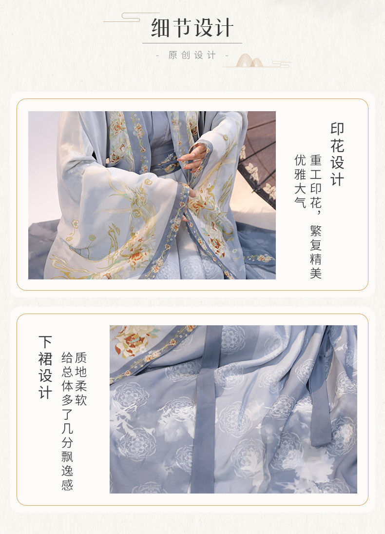 • 花云阁-汉服女 魏晋风学生超仙古装交领齐腰汉服学生日常春夏款印花全套 魏晋风 蓝色 XS