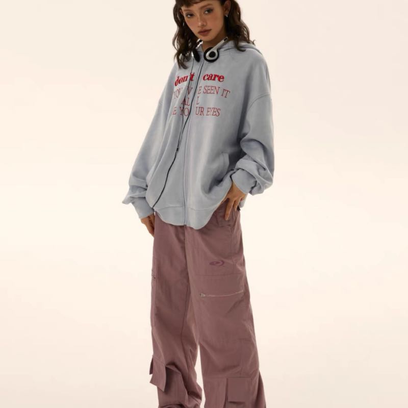 2023年新款春秋薄款卫衣女美式复古大码拉链连帽衫oversize高街情侣外套韩版宽松卫衣 戴帽薄款 粉丝 S