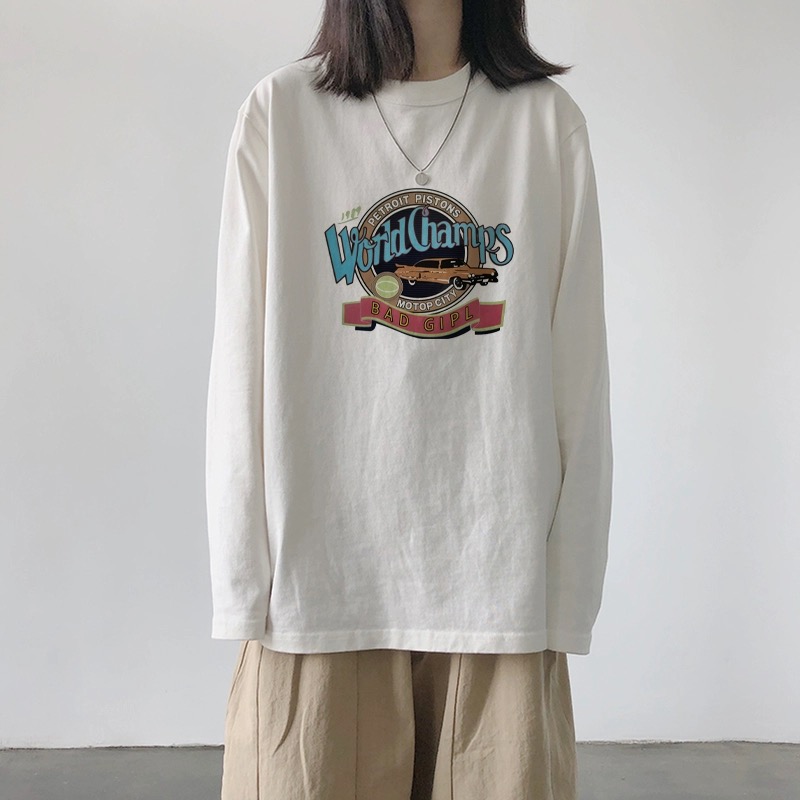 ins港风超火白色打底衫女内搭纯棉春秋2023年上衣洋气宽松长袖T恤 图案1 白色 M