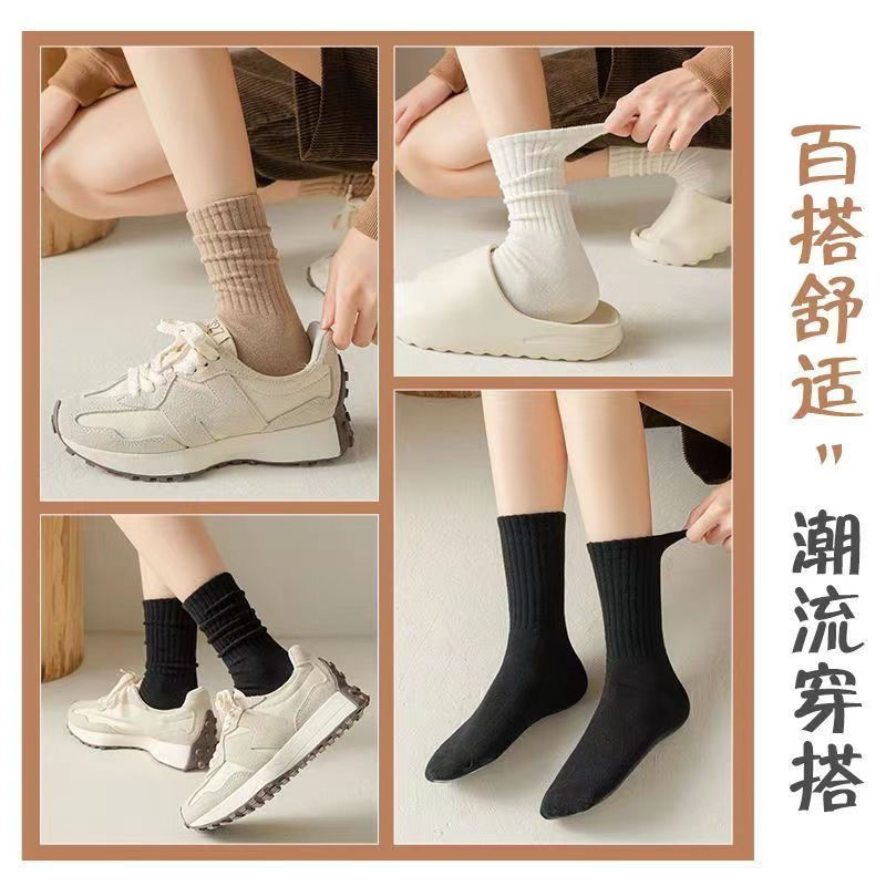 袜子女韩版中筒无骨堆堆袜纯棉吸汗透气白色松口月子袜多巴胺穿搭 白色 均码