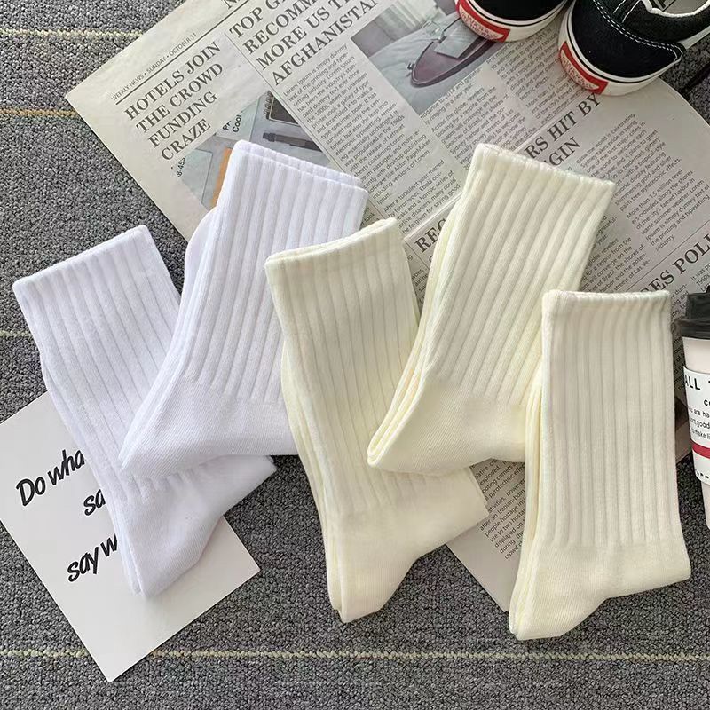 袜子女韩版中筒无骨堆堆袜纯棉吸汗透气白色松口月子袜多巴胺穿搭 白色 均码