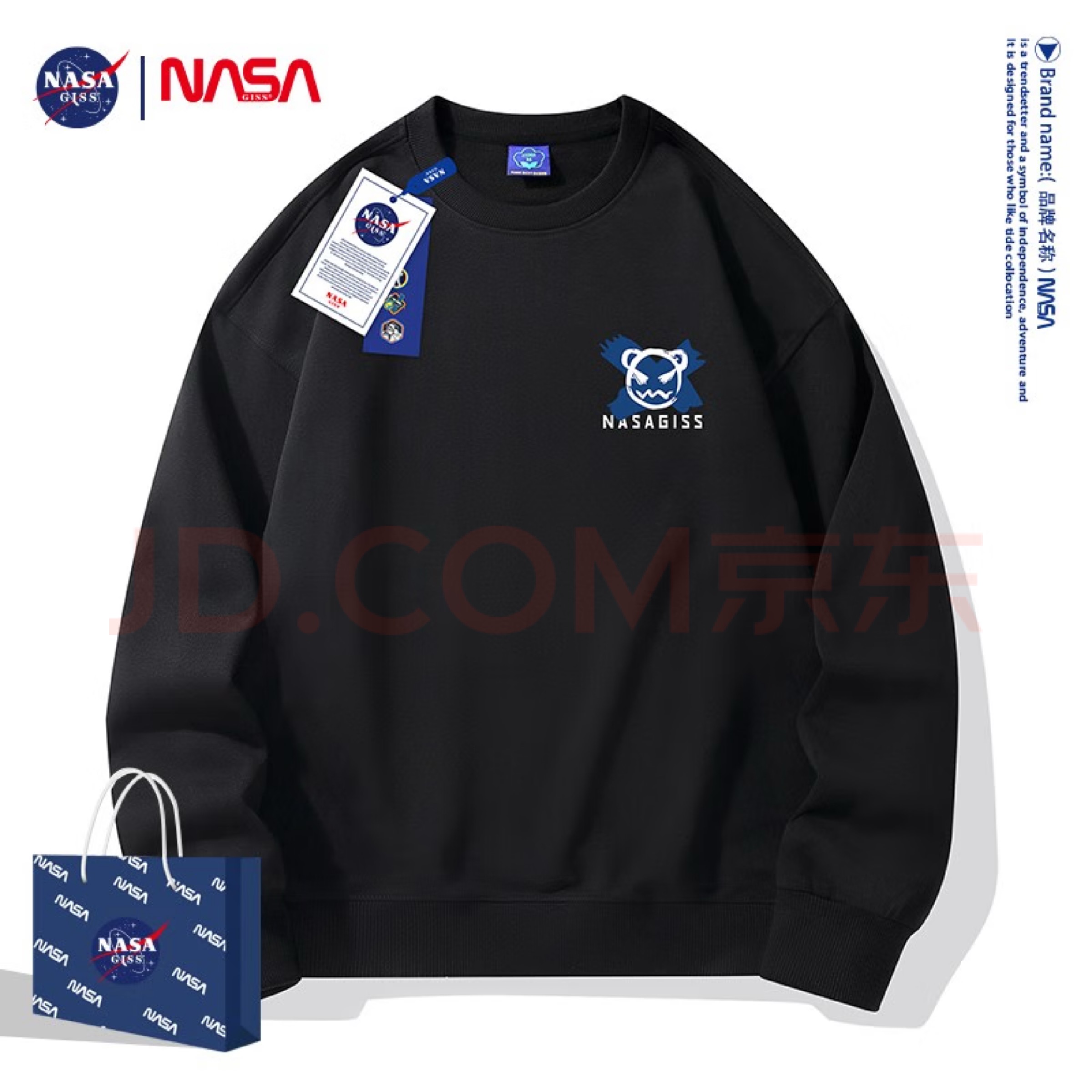 NASA GISS卫衣男士长袖女春秋新款圆领宽松装外套情侣无帽美式中山衣服加绒 8099春秋圆领卫衣 xl 黑