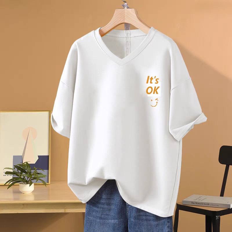 夏季宽松美式复古大码oversize短袖t恤女港味chic半袖体恤V领上衣 S 黑色