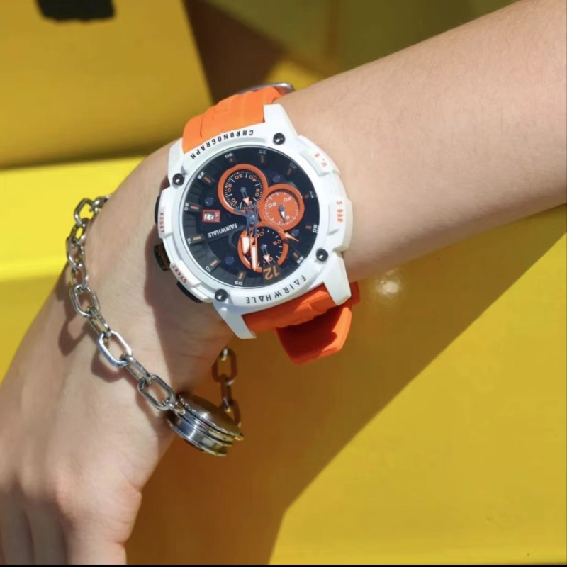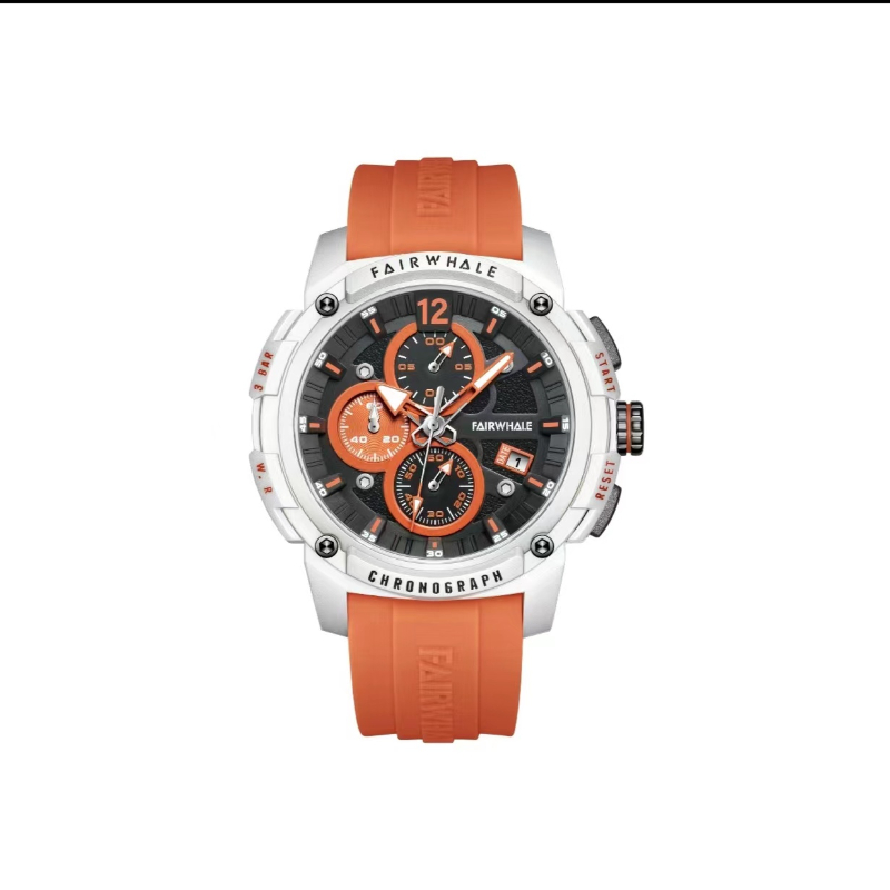 马克华菲驾驭者系列三眼六针罗盘日历多功能手表男 橙色