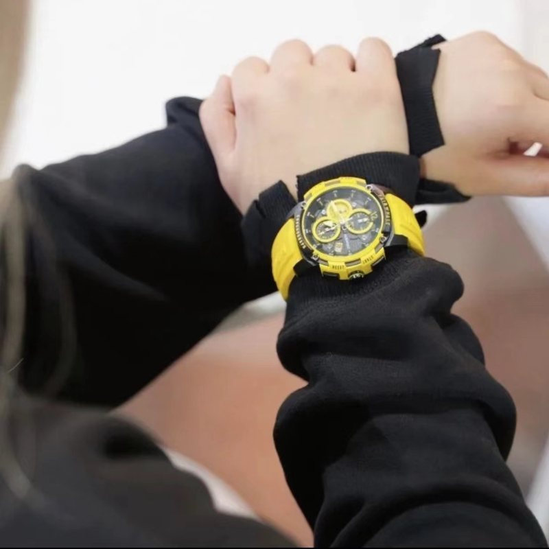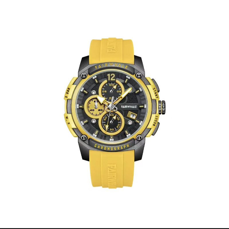 马克华菲驾驭者系列三眼六针罗盘日历多功能手表男国表男 黄色