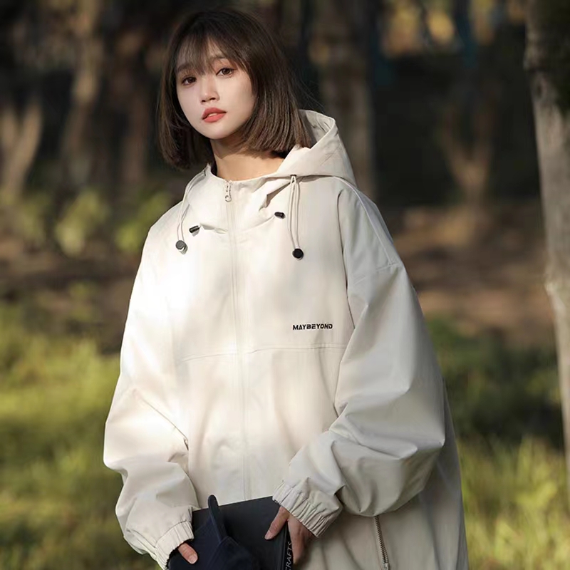 复古高级感户外冲锋衣外套女秋季oversize休闲百搭情侣工装夹克衫 S 果绿色