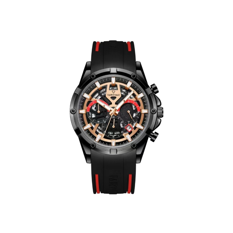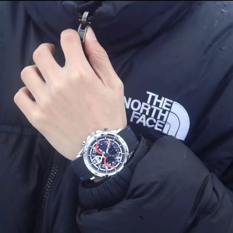 马克华菲驾驭者系列三眼六针罗盘日历多功能手表男 橙色