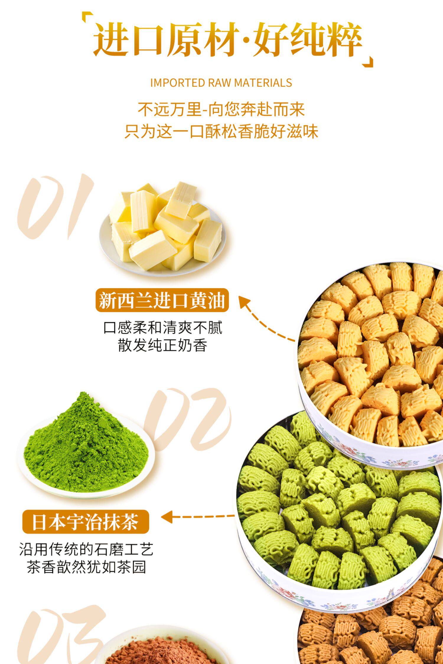 品牌:江南状元系列:小花曲奇口味:【经典三拼260g】原味+抹茶+巧克力 【高端单口味260g】经典原味 【高端单口味260g】抹茶味 【高端单口味260g】巧克力味 强推!【彼得兔三拼500g】原味+抹茶+巧克力 强推!【招财猫三拼500g】原味+抹茶+巧克力