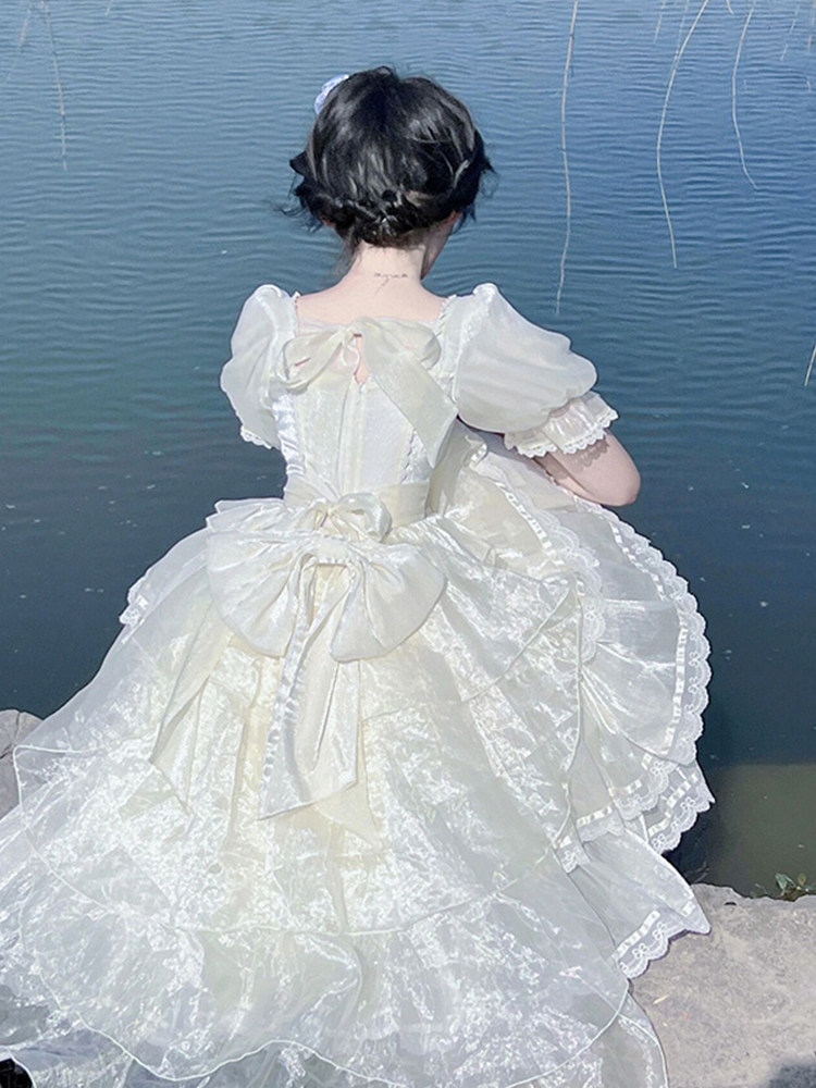 • 【现货秒发】短袖op花嫁网纱公主裙蝴蝶结洛丽塔lolita方领连衣裙 S