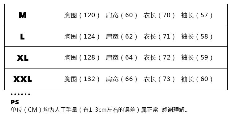 尺码: M L XL 2XL 3XL