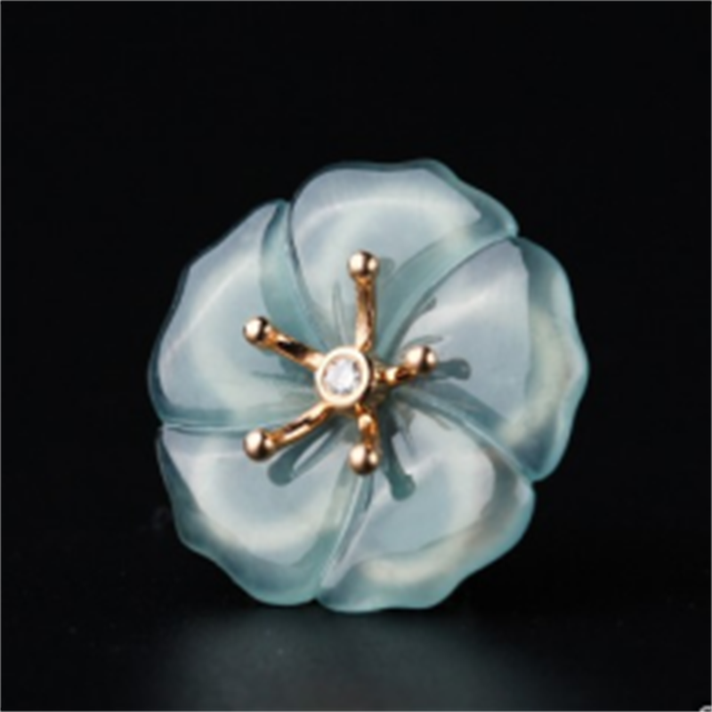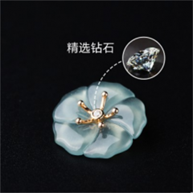 S925银镶钻天然A货冰种天空蓝紫荆花翡翠吊坠玉吊坠