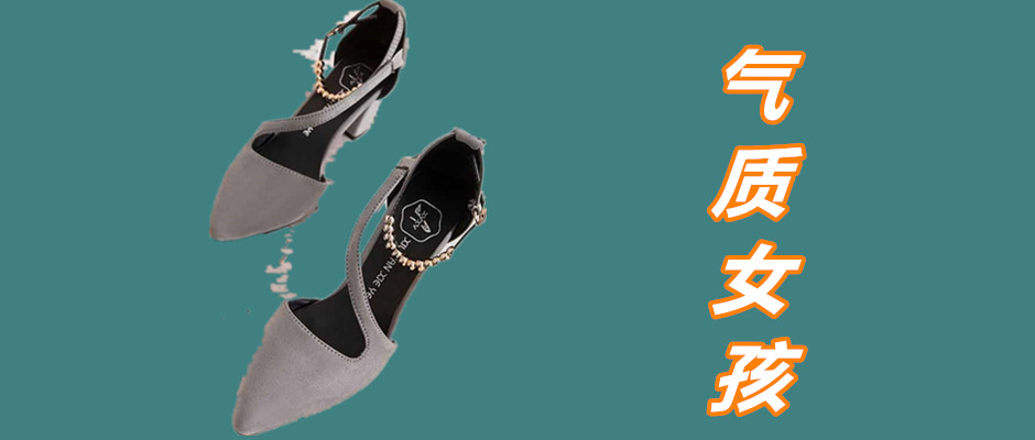 尖头粗跟高跟鞋一字扣单鞋 性感窜珠脚链高跟浅口凉鞋女鞋