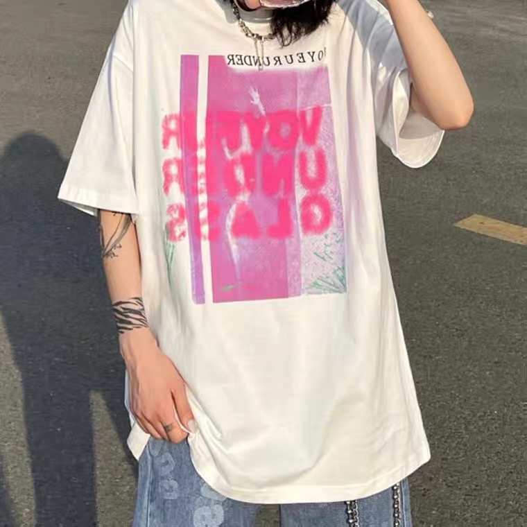 纯棉欧美高街印花T恤女夏季新款美式复古短袖