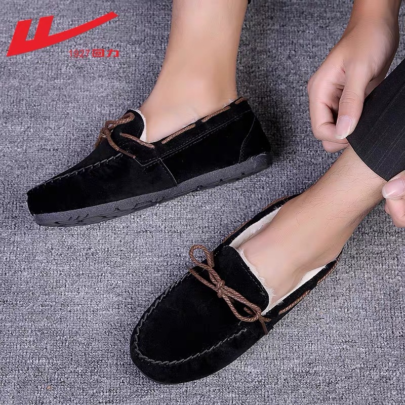 回力豆豆鞋男加绒保暖棉鞋男鞋冬季2021新款一脚蹬老北京棉布鞋男