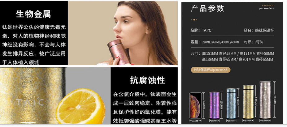 纯钛内胆,智能显温,杯盖轻音拧,礼盒包装